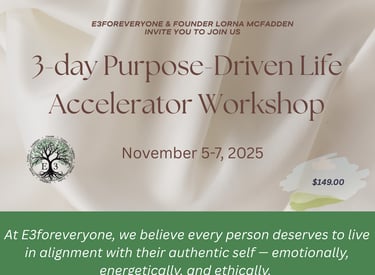The E3 Framework is a holistic approach to personal growth and wellness, built on three core pillars: Elevate, Enlighten, and Evolve. Designed to help individuals overcome challenges, gain deeper self-awareness, and embrace continuous growth, this powerful model supports a more fulfilling and balanced life. Through positive mindset shifts, meaningful reflection, and adaptive transformation, the E3 Framework empowers you to unlock your full potential and thrive—mind, body, and spirit.